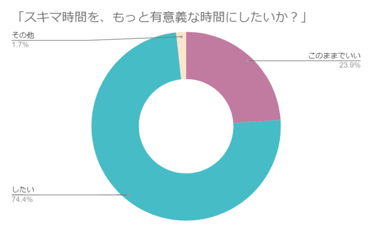 これを見ればわかる様に、暇な時間をいつもSNSに費やしている人が約80%、また約75%の方がこのような時間をもっと有意義に過ごしたいと考えていました。