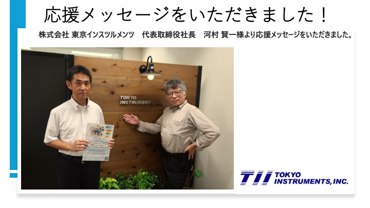 株式会社 東京インスツルメンツ 河村社長より応援メッセージをいただきました。