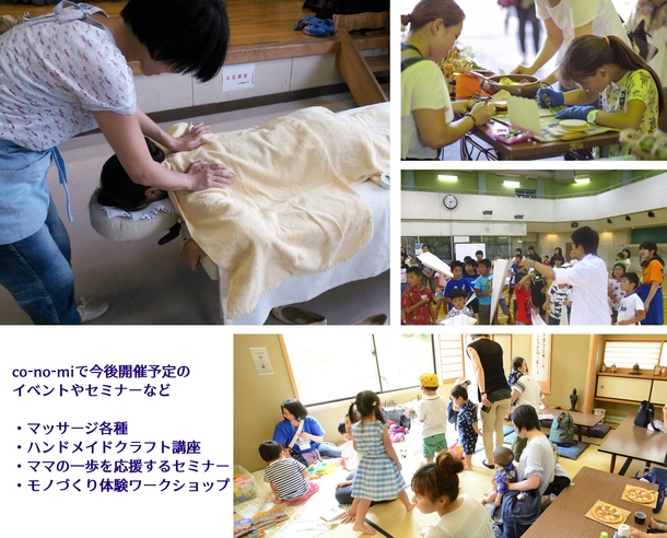 マッサージ各種、ハンドメイドクラフト講座、ママの一歩を応援するセミナー等、こちらで指定したママ向け企画に無料で一回ご招待させていただきます。