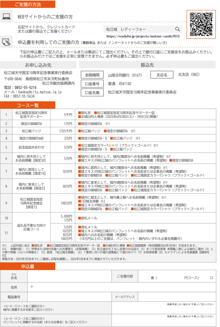 ・口座名義:松江城天守国宝10周年記念事業実行委員会