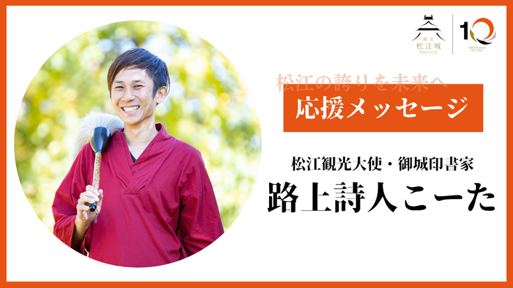 こんにちは!松江城の御城印を書かせていただいている路上詩人こーたです。松江城が国宝になって10年という記念すべき日に大人気のお城EXPOが松江にやってきます。
