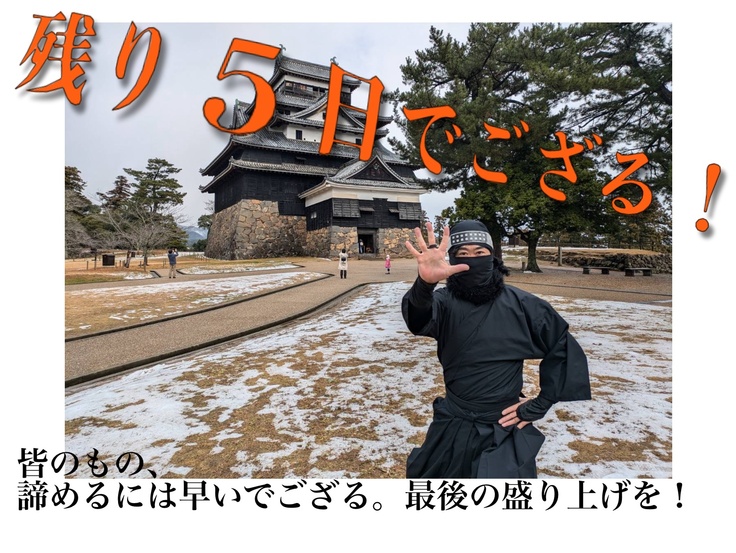 カウントダウン写真は、まつえ若武者隊 忍者「月照」さん。お城EXPOに1回目から参加しています。