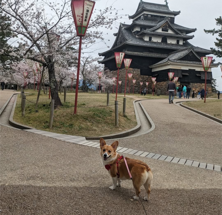 事務局の愛犬も桜と松江城が嬉しくてめっちゃ笑顔ですw