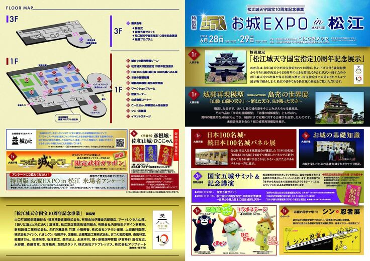 松江城天守国宝指定10周年記念事業「特別版 お城EXPO in 松江」がいよいよ来週末となりました。