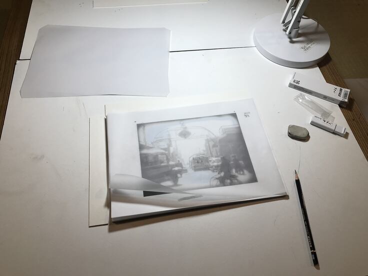 人数で分担して、上からトレーシングペーパーを重ねてアウトラインを描いていきます。