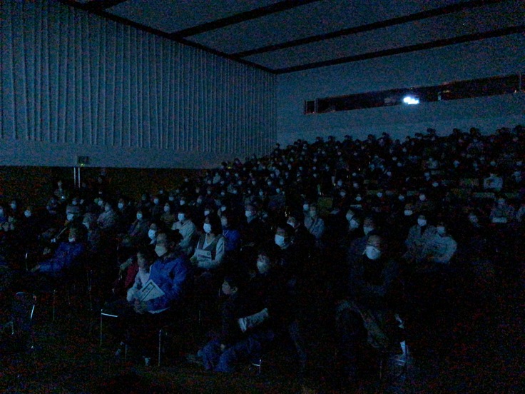 本編上映中は「おしゃべり自由」。昔を知る市民にとっては「懐かしい松本」の映像、若者にとっては「見たことのない松本」の衝撃映像(⁉)の連続、北アルプスや里山の変わらぬ景色もありつつ、笑いあり、涙あり、73分の映画の中で8mmフィルムの映像を通して、それぞれの家族への思いに溢れる様子が感じられました。