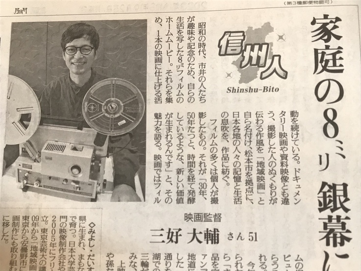 9月25日の読売新聞信州版に三好監督のインタビュー記事が掲載されました!