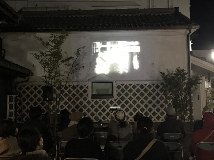 今や、松本の観光メインストリートである中町通りではじめての野外上映会。