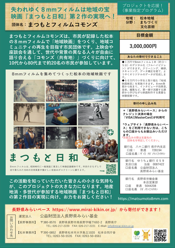 昨年度、地域映画「まつもと日和」の制作にご支援を下さった皆様