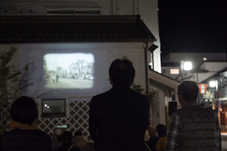 通りに面した広場で、なまこ壁に映写する映画をみなさんと見上げる時間は、他の場所とはまた全然違う楽しさのある上映会です!