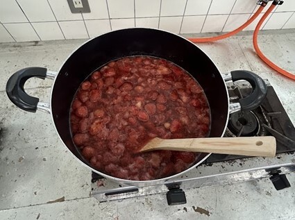 現在販売に向けていちご・ブルーベリー・リンゴソースを製造しています。普段より材料を多く使用し大量生産を行っています。