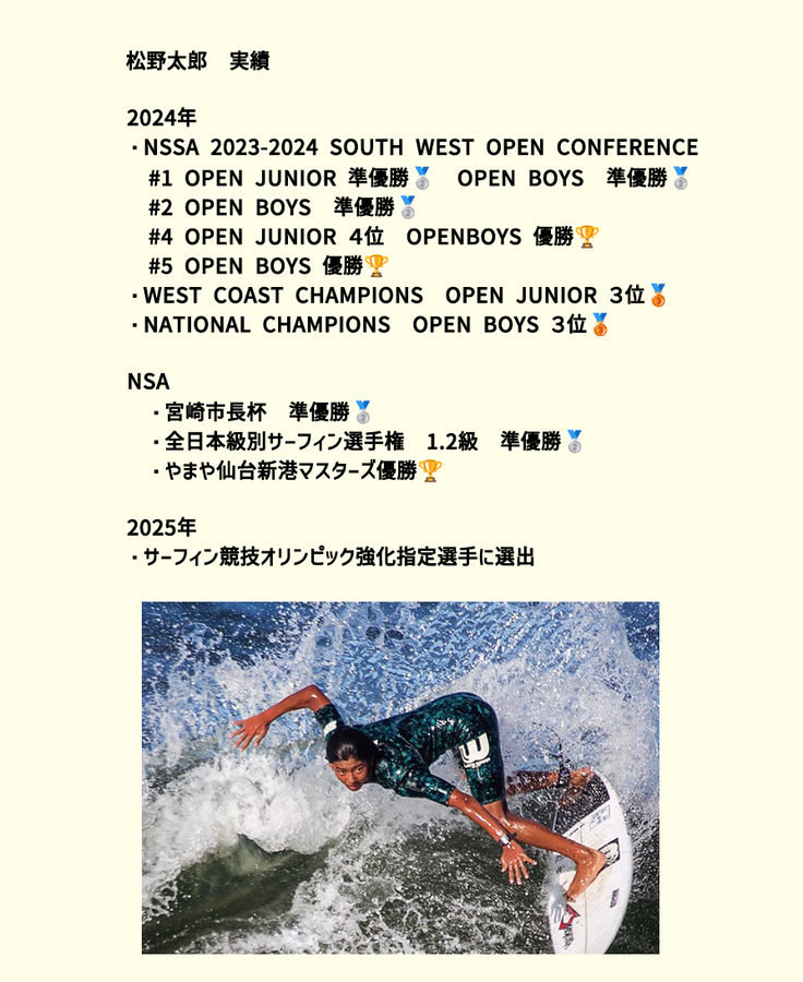 このプロジェクトをきっかけにサーフィンの存在を知っていただき、楽しさを広めて行きたいと思います。
