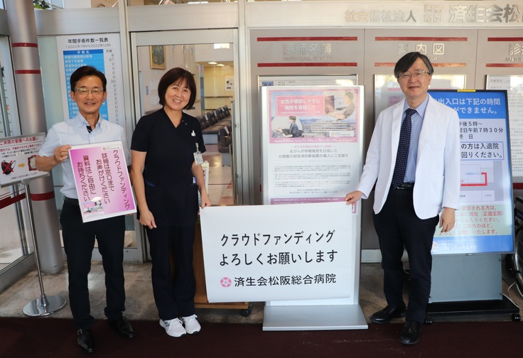病院玄関にクラウドファンディングのブースを設置しました!