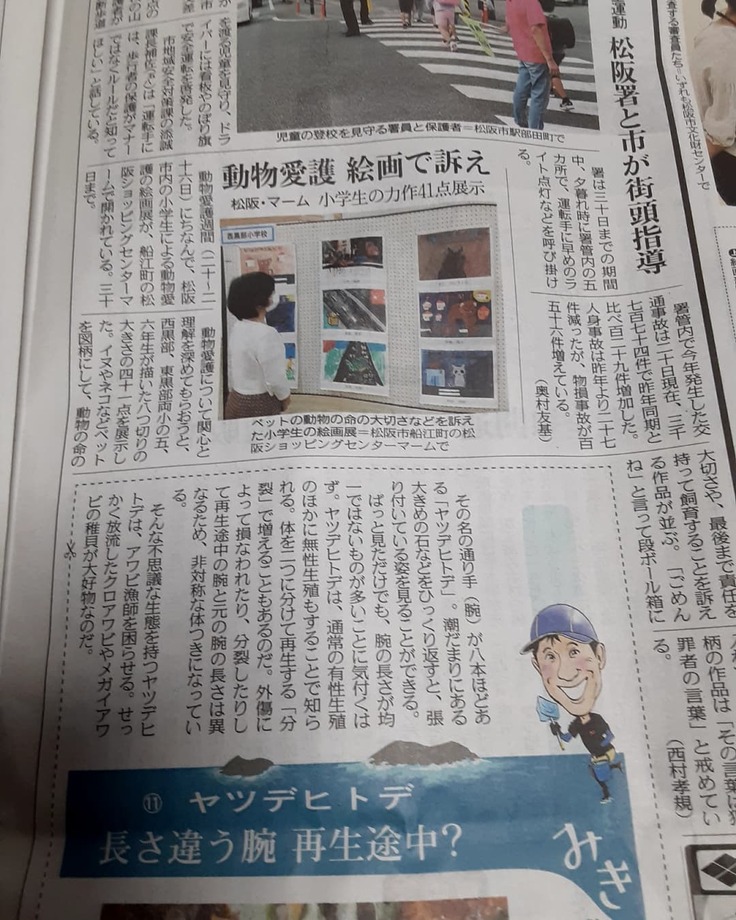 今年も動物愛護週間のイベントは、恒例の松阪市内の小学生に動物愛護のポスターを描いてもらいました。
