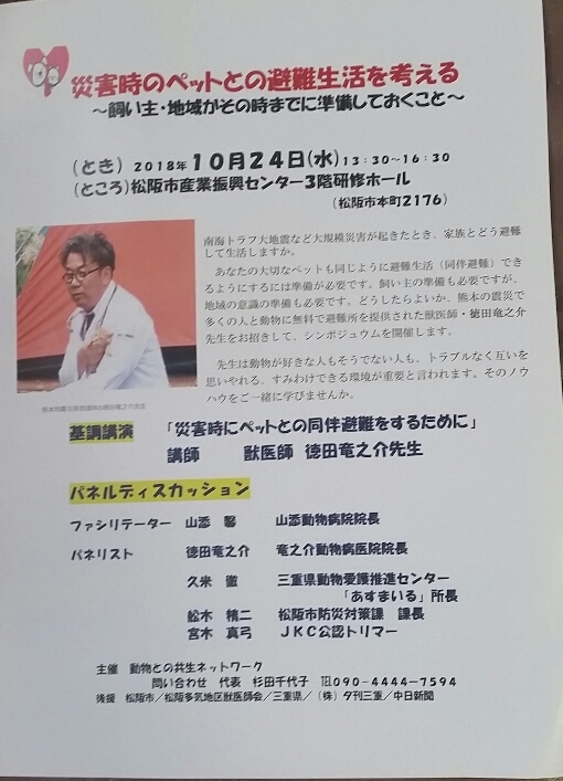 プロジェクトの目的である、熊本の竜之介動物病院院長をお迎えしての講演のチラシが出来上がりました。