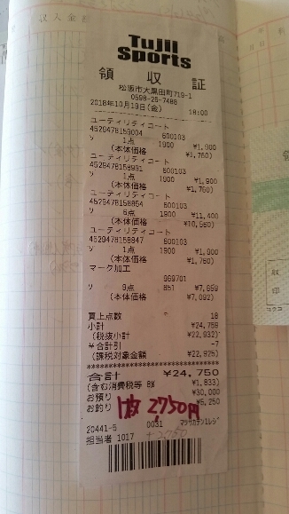 10月19日 スタッフジャンバー・・・・・・・・・ 24,750円
