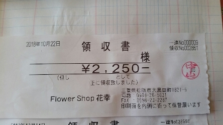 10月19日 花 会場に飾るもの・・・・・・・・・・2,250円