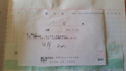 お礼等、一部領収書が無いものがありますが、ご容赦ください。