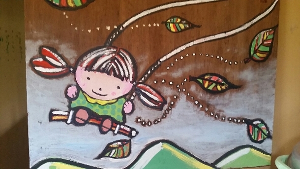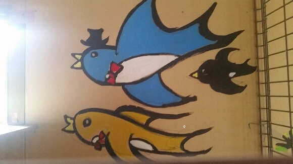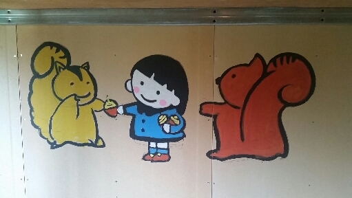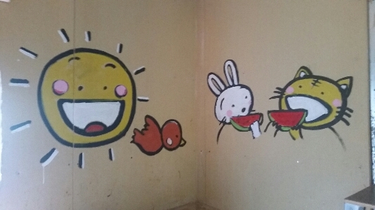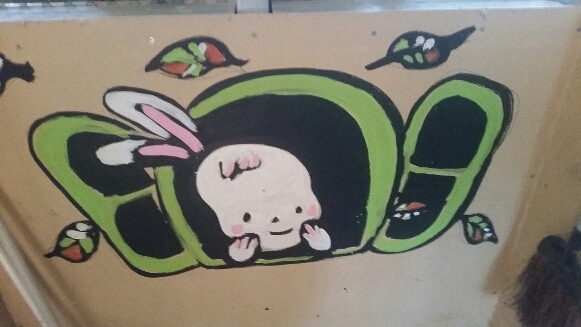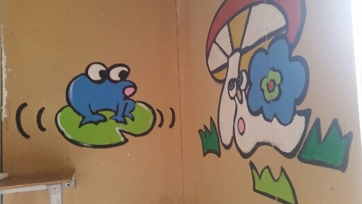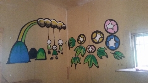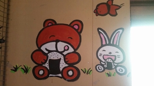 シェルターの壁画が、さらにバージョンアップをしていました。