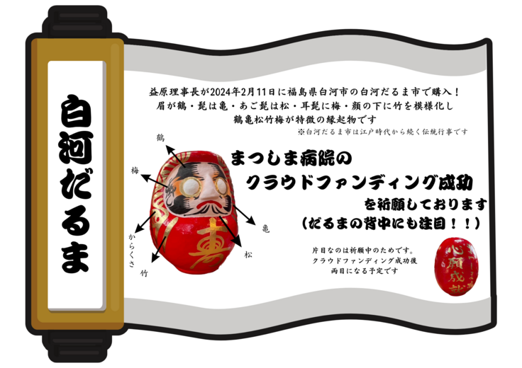 大安吉日の本日、ネクストゴールの達成を祈願して理事長・院長をはじめ職員でだるまの目入れのセレモニーを行いました。