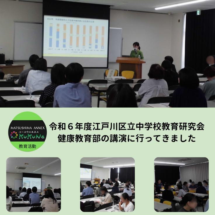 先日、江戸川区立中学校教育研究会(※江戸川区内の中学校の先生たちが、それぞれの担当教科の教育研究会に出席する会)が開催され、健康教育部(養護教諭など)にて講演を行ってきました。