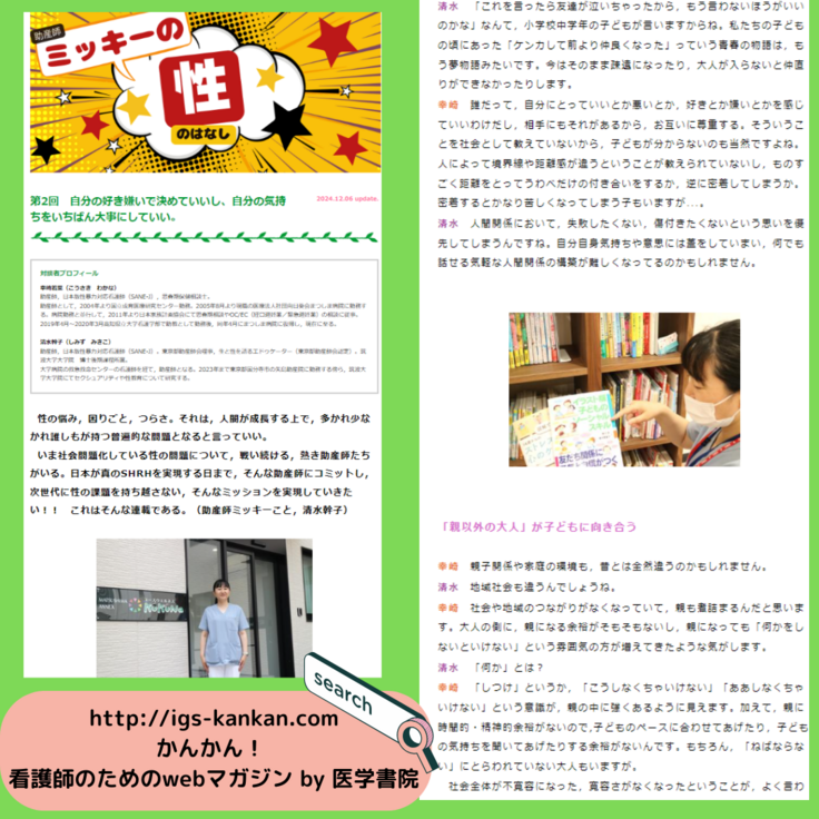 看護師のためのWebマガジンby医学書院『かんかん!』にユースウエルネスKuKuNa室長 幸﨑の対談記事が連載【全2回】されています。