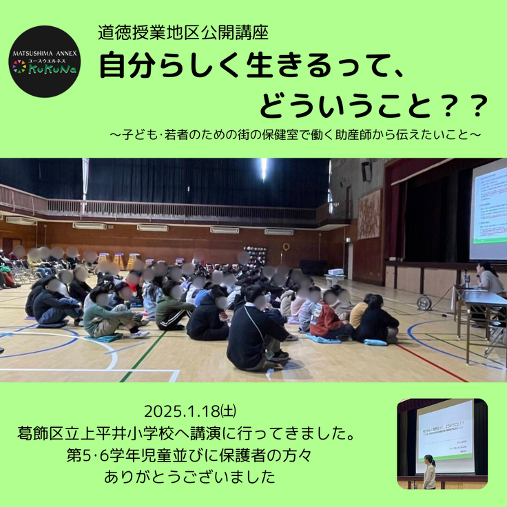 先日、葛飾区立上平井小学校の道徳授業地区公開講座の講師を担当しました。