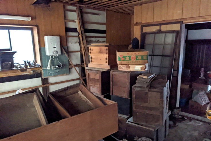 昔はこの家1軒に3世帯住んでいたとのこと。軽トラ10台分はあったと思います。