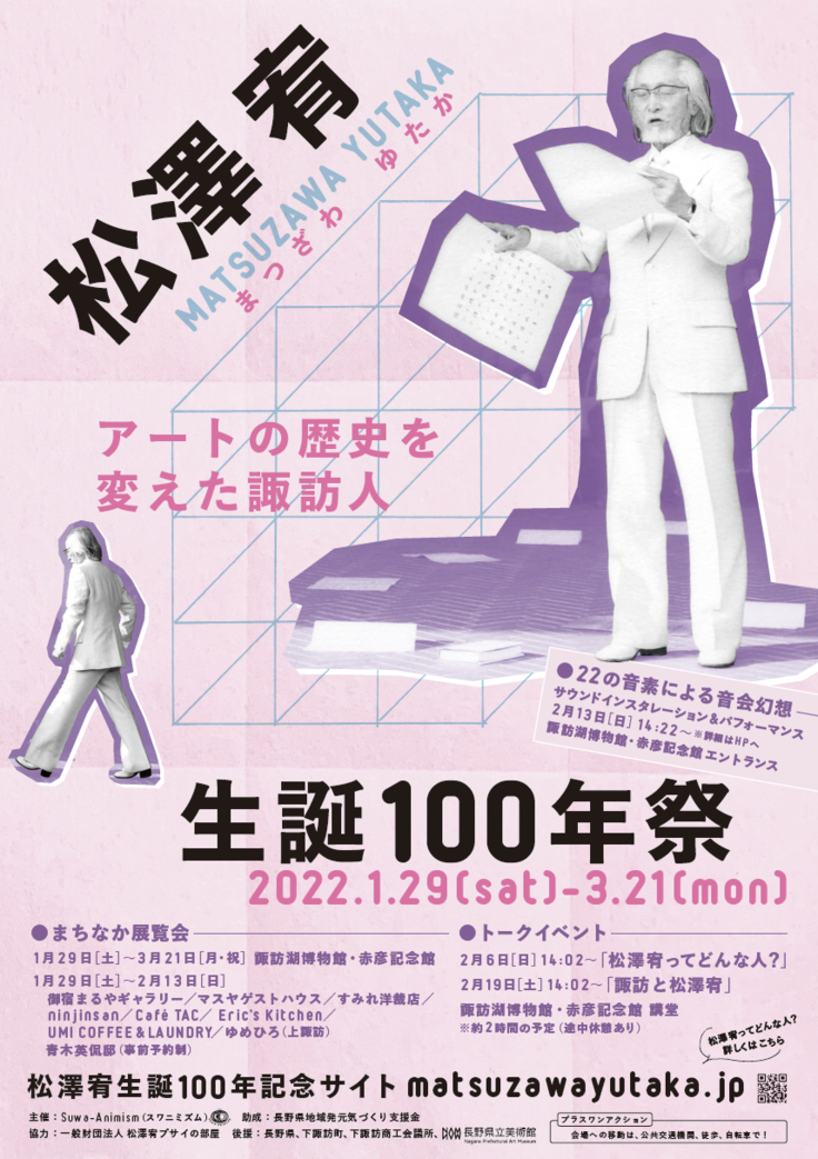 2022年2月2日から、今年リニューアルしたばかりの長野県立美術館で松澤宥の回顧展が開催されています。 この機運をさらに盛り上げるべく、私たちスワニミズム美術部は彼の生誕100年を祝し、諏訪を起点として「ローカルかつグローバル」に生きた松澤から学ぼうと、生誕100年記念 サイト(通称:公式ファンサイト)を立ち上げました。