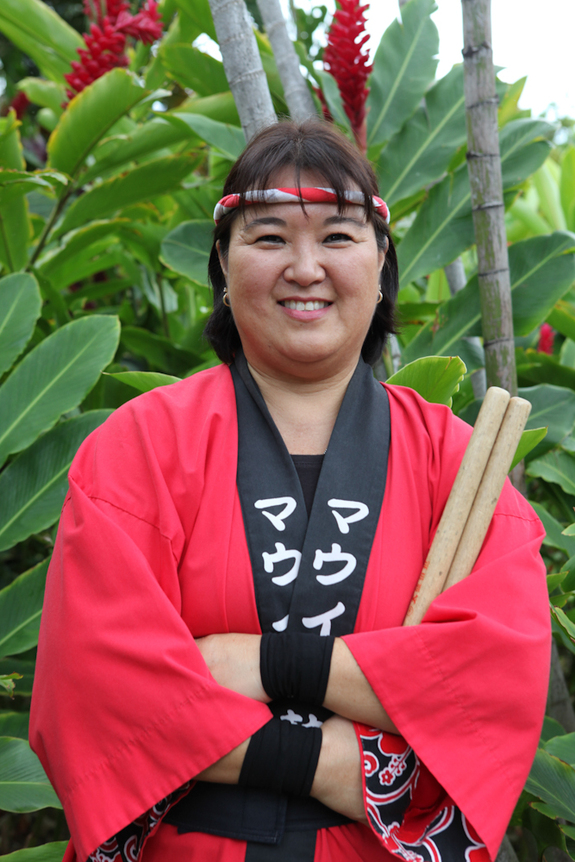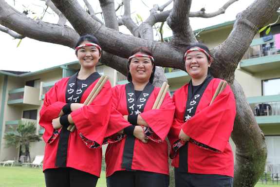 友人からマウイ太鼓クラブのワークショップの話を聞き、娘たちに一緒に行ってみないかと誘いました。やってみて気に入ったので入会しました。