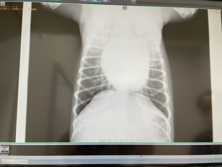 約3年間薬で進行を遅らせていることができましたが今年の4月の診断時、心臓のエコーを撮った際、心臓肥大が進行していることがわかりました。肥大した心臓が気管を圧迫しており気道が狭くなっていました。主治医には「いつ心臓から血液が溢れて肺水腫を起こすかわからない状態」と説明されました。