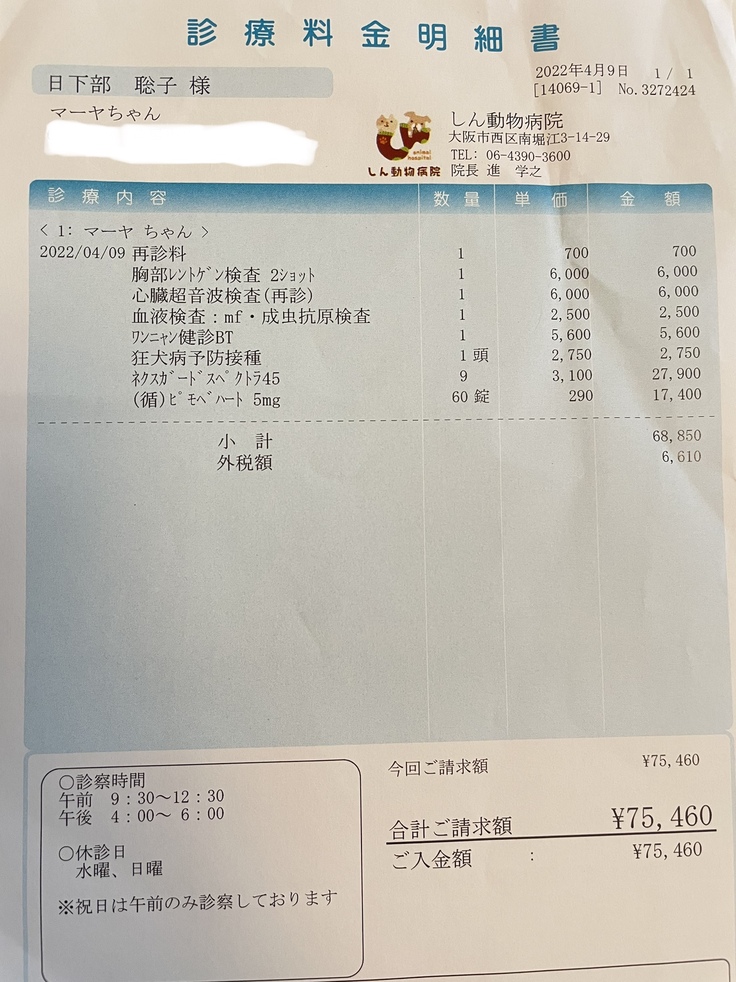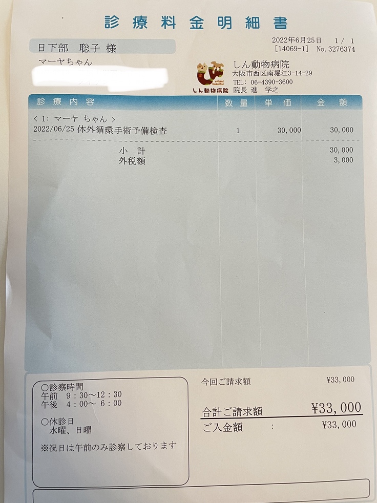 2022年7月10日に大阪市西区のしん動物病院で手術の予約をしました。