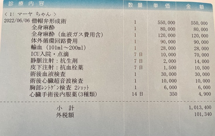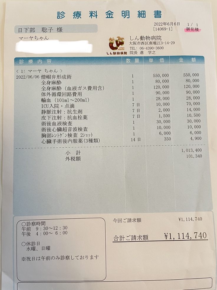 皆様からのご支援は全てこの手術費用に充てさせていただきます。