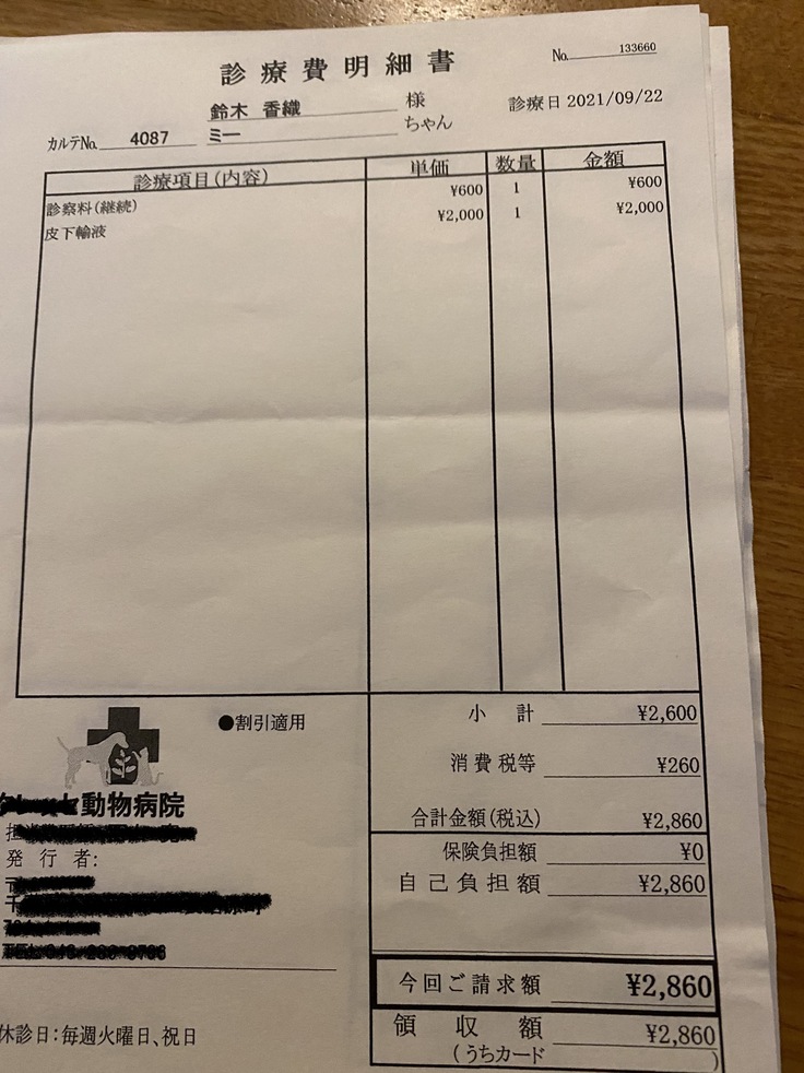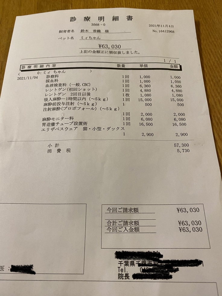 夕方迎えに行くと悪性腫瘍で進行も早い ウチの病院じゃこれ以上何もできないから徹底的にやるなら高度医療機関の川崎の病院を紹介します。治療するなら早い方がいいですよと。100万単位のお金がかかります。と…