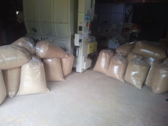 10月1日は前日に籾摺りしたもみ殻の山を