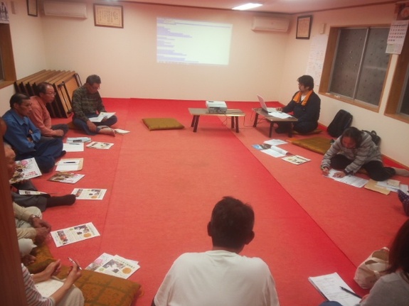 本プロジェクトの住宅「めぶき」建設に関する議題もあり、プロジェクターを駆使しながら老若男女で話し合いました。