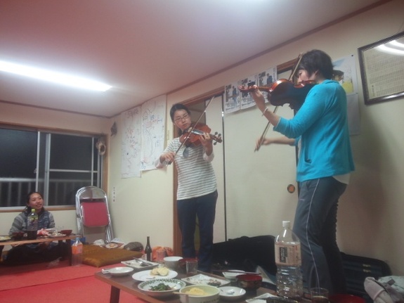 交流会の様子です。参加者の方が楽器演奏を披露してくれましたのでみんな動画をとっています。