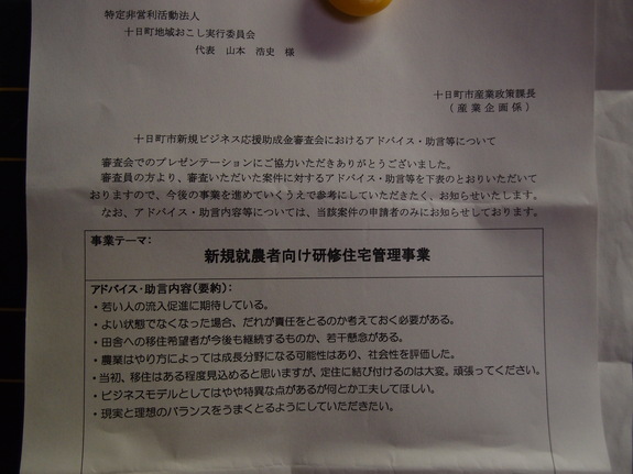 今回の助成金の審査員の方々からありがたいアドバイスを頂きましたので写真掲載させていただきます。