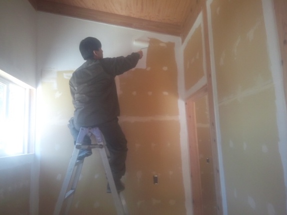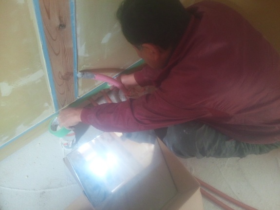 パテの穴埋めが完了したので、4月9日から「めぶき」の壁塗りを行っています。