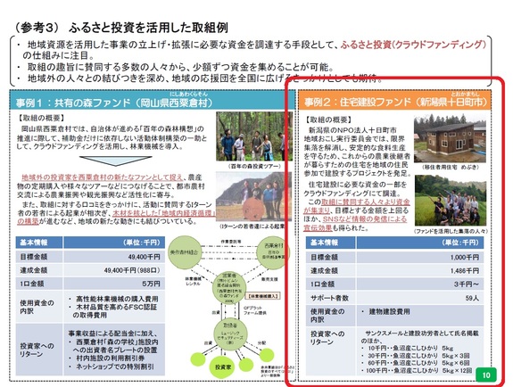 農林水産省が出した資料「魅力ある農村漁村づくりに向けて~都市と農村漁村を人々が行き交う「田園回帰」の実現~」に、ふるさと投資を活用した例として掲載されました。