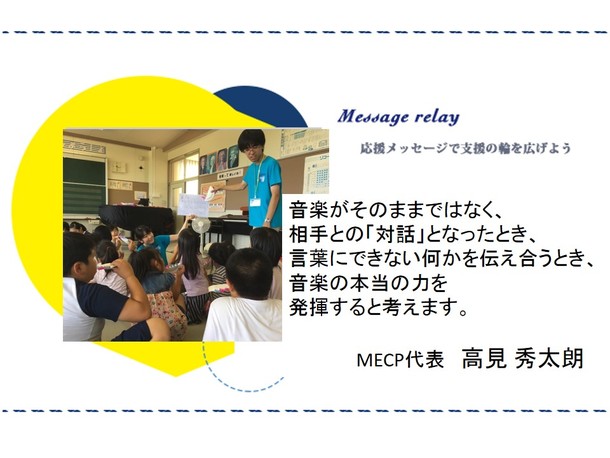 100%を超えた分につきましては、もうひと押し予定しているMECP独自の東北訪問活動など、MECPの活動で最後まで大切に使わせて頂きます。