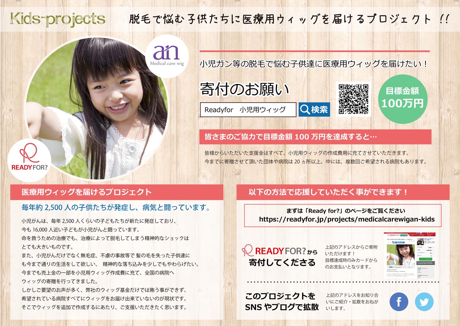 「小児ガン等の脱毛で悩む子供達に医療用ウィッグを届けたい!」実行者、anの山下です。