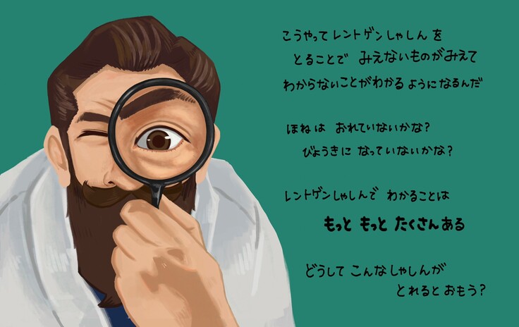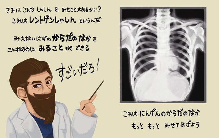 医療を学ぶ教科書はたくさんあるけれど、「痛くもかゆくもない」レントゲン検査に"興味"を持ってもらえるように、"面白い"と思ってもらえる絵本をMedical PLAYとラフコネクトで自信を持って制作をしました。