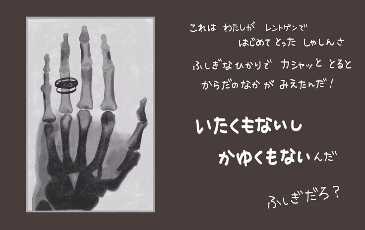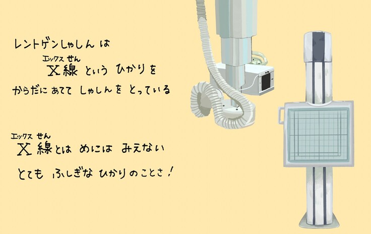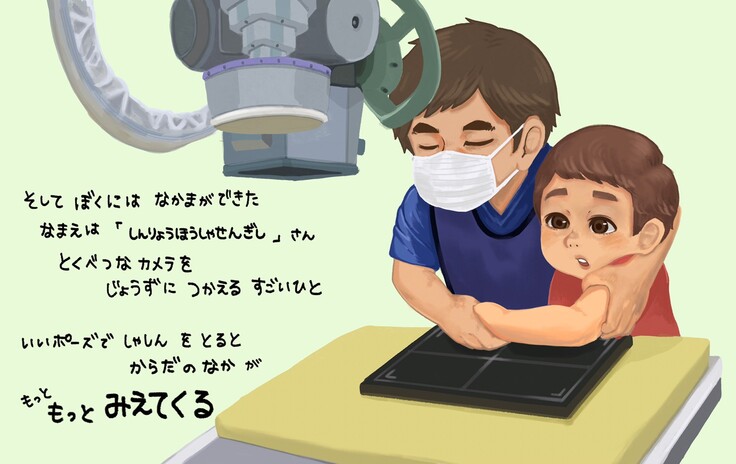 全ての人が体験する単純X線検査だからこそ、多くの方に手にとってもらいやすい絵本という媒体にこだわりました。