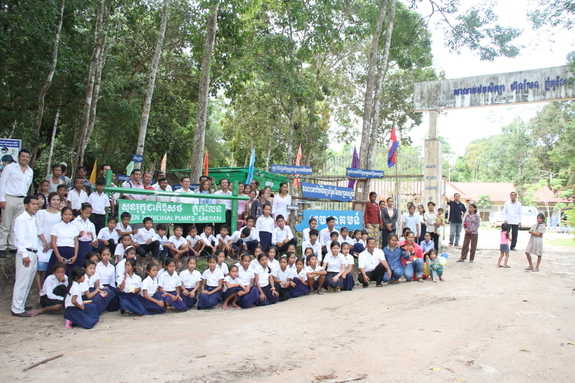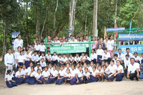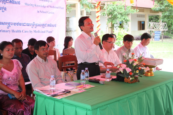 もうひとつ驚かされるのが、イベントにおける各人のスピーチの旨さ。クメール語での内容はともあれ、とにかく長いのです。長ければ長い程良いそうです。しかし、今回は児童たちが参加しているため、スピーカーの方々には、申し訳ないが手短なスピーチを心がけて頂くよう事前にお願いいたしました。小学校校長先生、地区長、国立伝統医療局副局長が、各自の立場から今回完成した「薬草園」についての熱い思いを、児童たちにも解りやすく語って下さいました。(結果的には心がこもるあまり、皆さん長〜いスピーチとなりました)。
