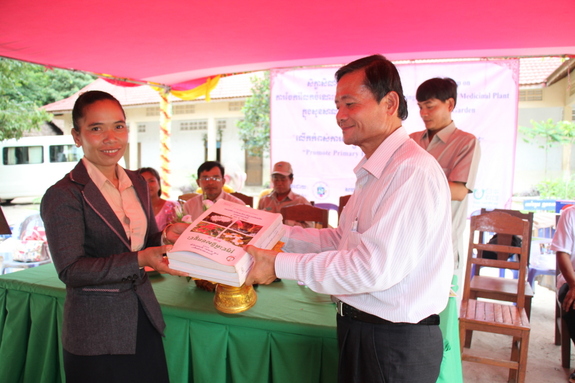 薬草園の管理を行っていく小学校には、国立伝統医療局が出版している「カンボジア薬草集(クメール語版)」が贈呈されました。