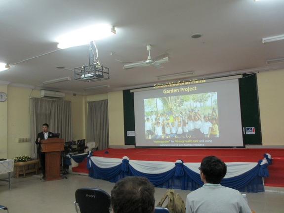 カンボジア国立医科大学からの推薦があり「生物多様性・天然資源と保健」のセッションの中で「小学校の薬草園プロジェクト」をスライドを使って紹介しました。