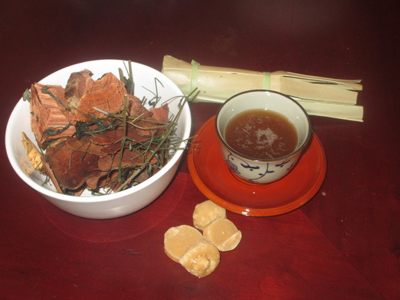 味は苦いです。前回はハチミツを舐めながらチビリチビリ服用しましたが、今回は越し出したものに地方で購入したパームシュガーを入れました。この砂糖、甘いだけでなく体にも良い上にたいへんまろやかな味わい、最近日本でも売り出されて人気上昇中です(参照:やし花糖)。