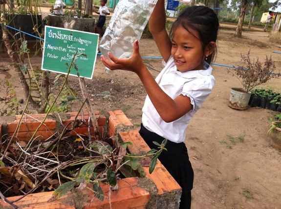 シェムリアップ州における本プロジェクトの実施を前に、日本財団の協力を得て、2つの小学校で薬草園のワークショップを実施します。