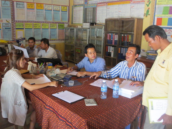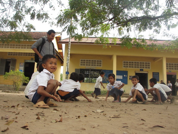 まずは、カンボジア南部のカンポット州、カンポンクレイ村の小学校。この学校では校長先生と伝統医療師が協力し、自前で小学校の敷地内に薬草園を作っていました。今回は、現代薬と併用して地域で活用できる薬用植物を5つの症状別にした展示棚を設置し、ワークショップを開きました。